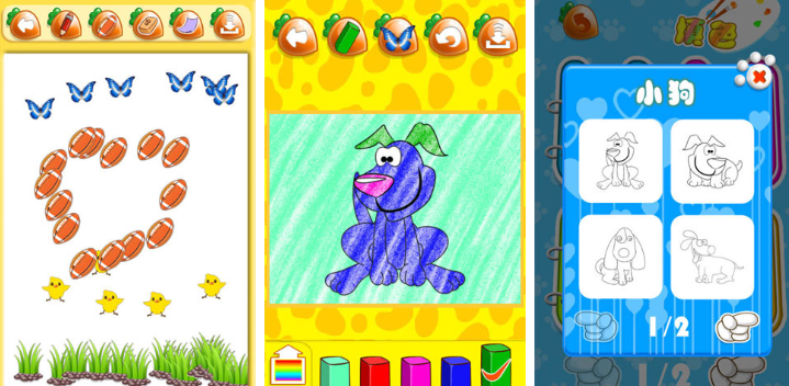 在宝宝学涂色游戏中,充分考虑到低龄宝宝的操作能力,设计了极为简单的操作方式,在选择颜色时,从明亮活泼的黄色、红色,到清新淡雅的蓝色、绿色,各种常见与不常见的色彩应有尽有,宝宝只需点击心仪的颜色,再点击图案中需要上色的区域,就能轻松为图案披上绚丽外衣。