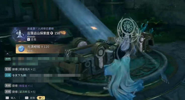 任务完成后继续深入,沿途所有渡石均需开启。沿阶梯上行,同步清理两层平台上的小怪以激活机关,继而推进至下一节点。两侧机关全部触发后,可开启一个额外宝箱,奖励自由选择。前行过程中需将旋转机关逆向调节至指定角度,邻近经验宝箱需及时击破。随后开启墙面机关,进入通道后无需规避激光,直线通过即可。