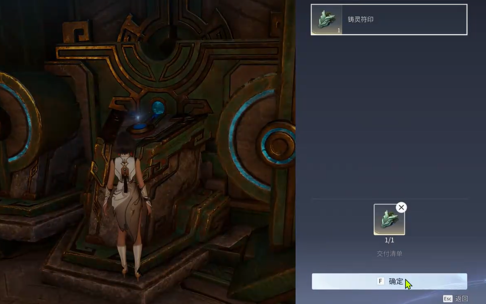 第三层机关结构稍复杂:需往返两次,先后运送钥匙与燃烧石至同一平台,双物同时压住两块踏板后,方可远程激活对岸机关。之后携钥匙继续上行,沿途小怪直接清除。特别注意:该层存在一名机器人NPC,其身上携带关键任务道具“铸节”,必须拾取,否则后续流程无法推进。