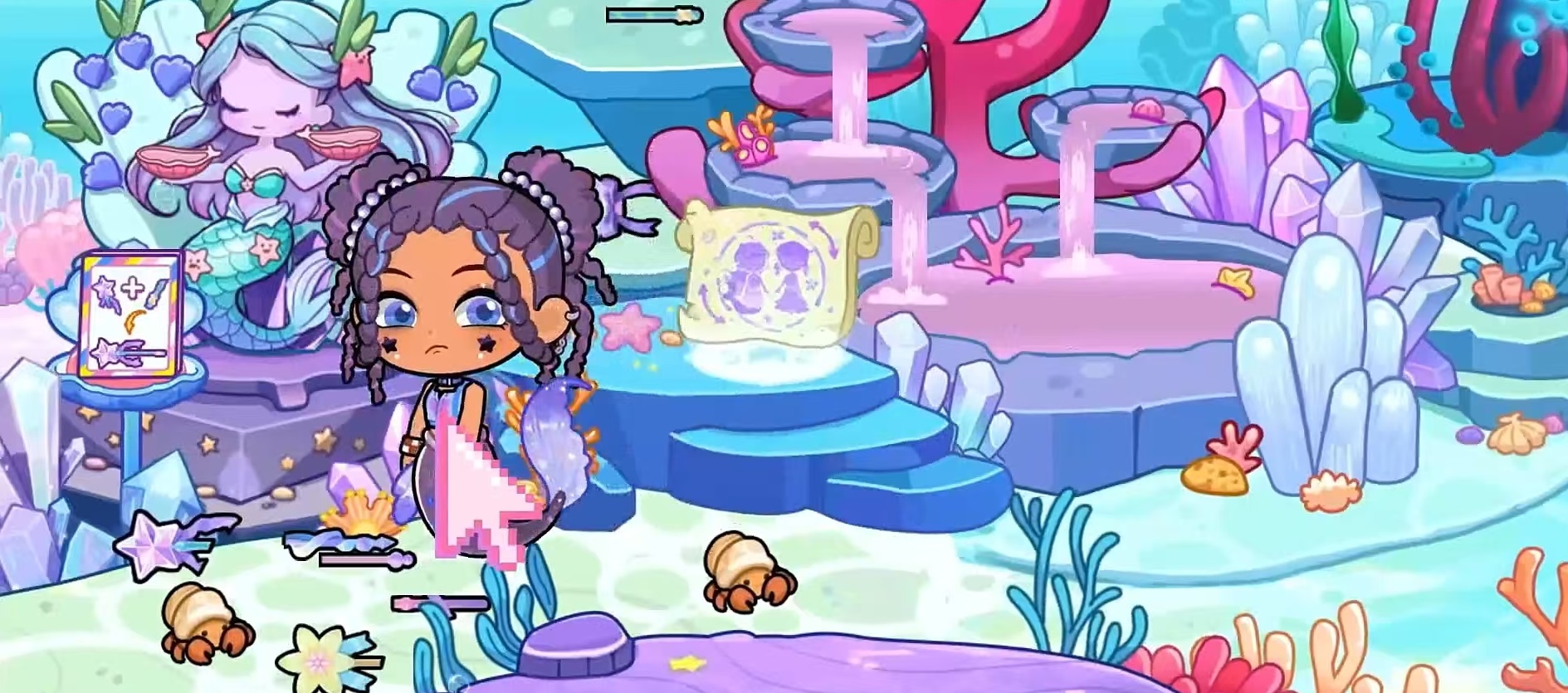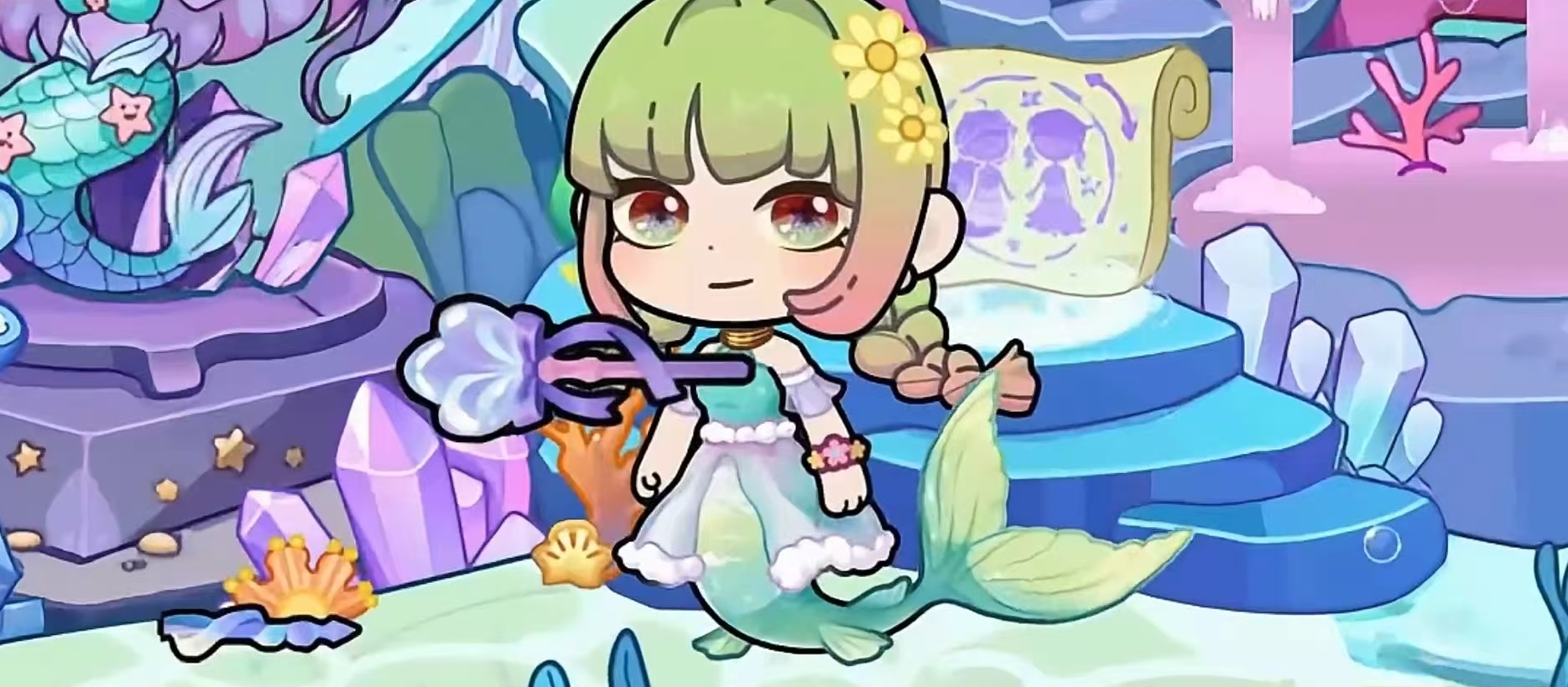 第二处“美人鱼之家”营造温馨生活氛围,是海洋系角色日常聚集地;第三处“服装店”提供包括鱼尾装、裙装及配饰在内的全套外观定制系统,支持实时换装与场景合影;第四处“荒岛”以神秘森林为视觉主体,融合童话光影与隐藏角色彩蛋;第五处“解密结局地点”设定于火山地貌环境中,岩浆流动与环境线索交织,需玩家通过观察、推理完成剧情解锁任务,解救被困NPC;第六处“花园”为海底复活节主题空间,支持彩蛋手绘与个性化装饰创作。