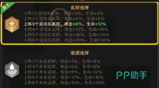 元素属性包含火、水、风、混沌四大体系,存在明确克制链:风克水、水克火、火克风;混沌属性独立于该循环,不参与克制关系。当攻击方元素克制目标时,将额外获得25%伤害加成与20%命中率提升。此外,同元素武将上阵可激活专属光环,每增加一名同系武将,光环提供的攻击与生命加成均递增,形成元素协同效应。