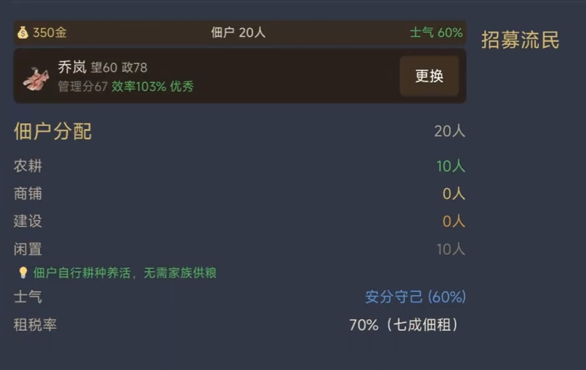 家族治理是贯穿全程的核心玩法。每位族人具备唯一属性标签,如“精于稼穑”“善通商贾”“勇冠三军”等,其能力值直接影响对应模块产出效率。例如,指派农业专精族人管理屯田,可提升粮食产量;委任擅长交涉者主持市舶事务,能降低采购成本并扩大贸易网络;而体魄强健者投入练兵,则显著加快部队训练速度与兵种解锁进度。合理匹配人岗关系,是实现家族可持续发展的关键逻辑。