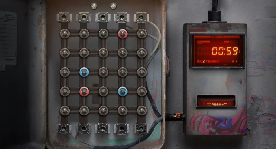 入井后首波敌对单位为低威胁基础守卫,推荐采用移动射击+掩体轮换方式快速清场;随后抵达上层平台区域,可见红、蓝、绿三色独立功能建筑呈三角分布。此阶段严禁无序推进——须按“绿→蓝→红”顺序激活对应模块:绿色建筑后方存在主控电箱,通电后方可开启蓝色建筑入口;该房间内含密码箱(重要物资点)及终端主机,切勿操作主机,否则将触发30秒倒计时警报并延长第二波敌人刷新间隔。