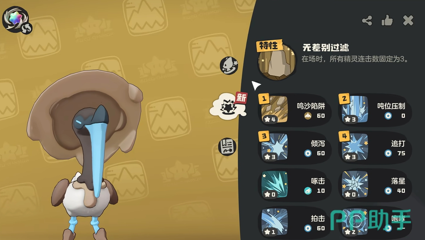 一般来说,吸泥鸥本身不具备实战价值,真正发挥作用的是其进化体泥吼牙。该精灵拥有“无差别过滤”特性,能强制将对手的连击次数限制为三次,对依赖高频连击输出的精灵形成有效压制。同时,泥吼牙具备出色的物防能力,搭配鸣沙陷阱等技能可在对抗中打出可观伤害,适合作为战术型奇兵加入队伍。若仅用于图鉴收集而无需参与战斗,则在升至40级完成进化后,无需继续投入资源进行培养。