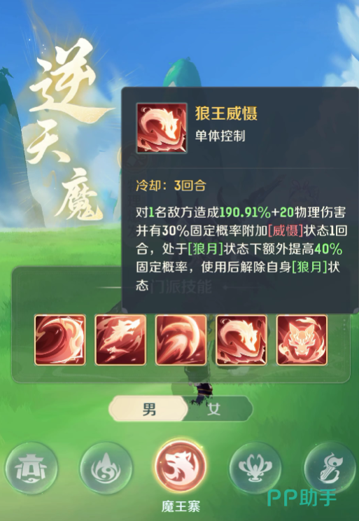 魔王在的是四技能是控制技能,可以有效的对敌人造成三级伤害,并且附加控制效果。在战斗的时候,玩家可以直接使用这个技能来打断敌人的技能释放,也能够控制敌人的行动,而魔王在的终极技能是千级镇魂,在战斗中可以有效地避免敌人出现复活的情况。
