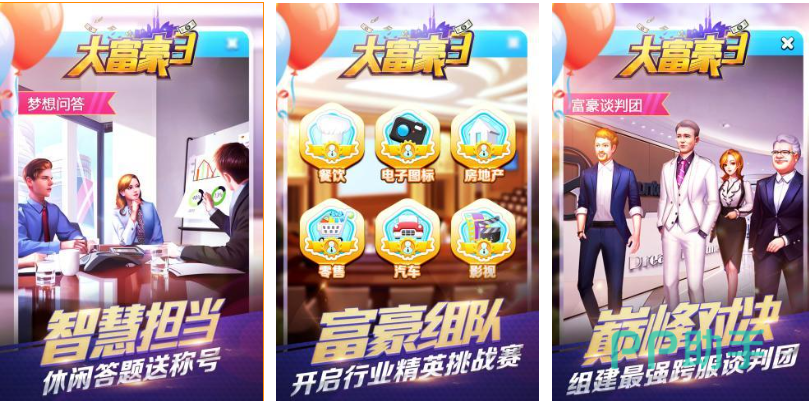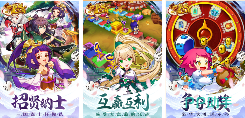 富豪闯三国是款拥有大富翁冒险元素的三国主题作品,经典大富翁的设定跟萌版卡通风格深入人心,还有超前的决斗系统让大富翁高手互相切磋,区别于其他三国游戏本作采用骰子互动的设定,以智谋进行闯关冒险的大富翁设定别具一格,亦可在虚拟世界招贤纳士让不少三国英雄为你工作,化身大富豪进行三国冒险的玩法耐玩性十足。