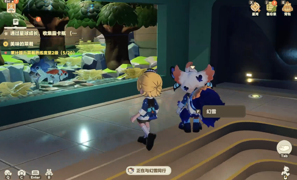 在互动任务方面,玩家需收集三颗流星碎片以完成前置条件,进而解锁星象术教学内容,并接收来自幻雪的专属播报信息,如提升采矿效率、增加种植经验等实用增益效果。