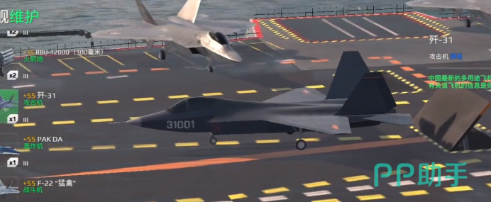 在实际战斗的过程中,歼31表现还是很不错的,例如在风暴地图对战的过程中,玩家可以利用它先完成探路,然后去迎接敌人的轰炸。在面对敌方004航母时,照样也不会畏惧,可以灵活的把干扰弹扔下来,发挥对应的效果。