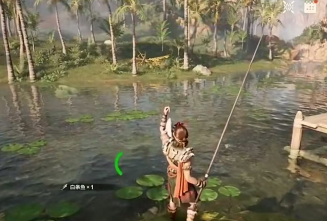 玩家一旦到了深水区域,这时候要关注自己的耐力,因为在深水区域游泳时会让耐力大幅度的消失。一旦玩家的耐力消失之后就会影响到生命值,所以玩家要合理的规划路线。当玩家已经成功的解锁了游泳天赋之后,此时就代表玩家可以使用钓鱼竿去钓鱼。