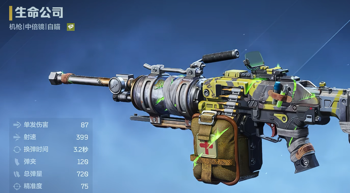 生命公司——生存导向型金色主武器。区别于传统输出定位,其主动技能可在敌方开火瞬间自动展开防护盾,有效应对突进、绕后及伏地魔类打法;被动技能在追杀状态下随机补充主武器弹药,延长连续作战时间。该枪特别契合游走牵制、节奏反打型玩家,是提升单局存活率与战术回旋空间的关键选择。