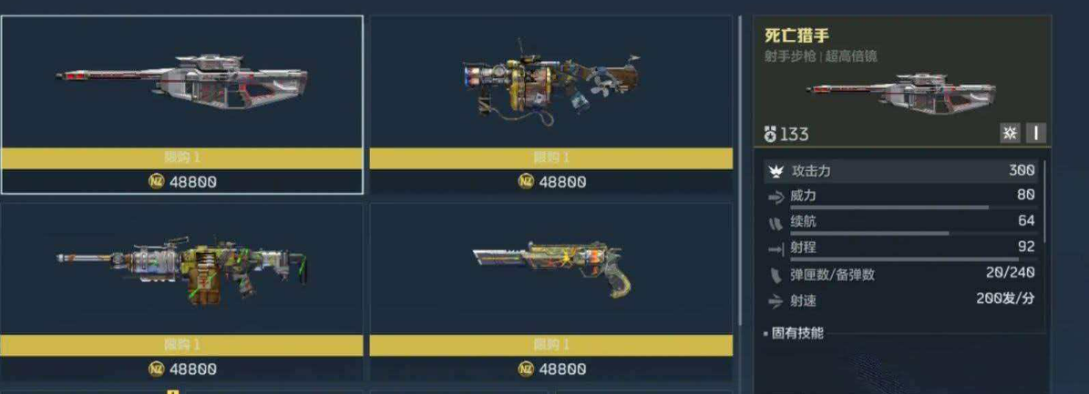 死亡猎手——中远距离持续压制型射手步枪。该枪为金色品质,核心优势在于主动技能开启后进入无耗弹高速射击状态,显著延长火力压制窗口;被动技能赋予子弹六层防御穿透能力,且伤害全程不衰减。在团队推进、据点防守或拉锯式团战中,尤其适合部署于中后排位置,对高护甲目标及密集阵型具备高效瓦解能力。