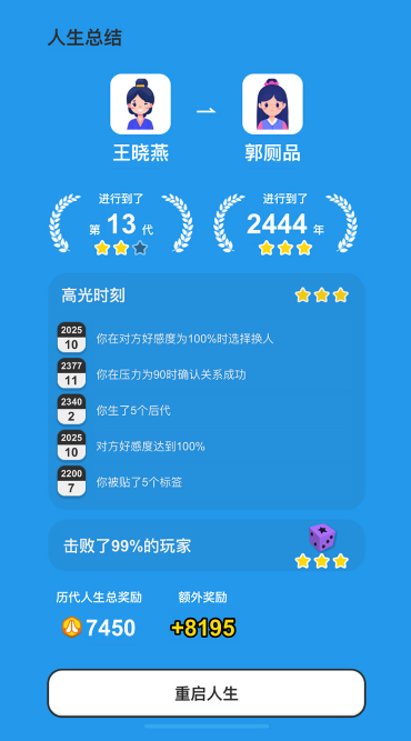 在人生的过程中经常会遇到一些有趣的小插曲,而此使你不同的决定将会决定了故事后面的走向。当你能成功孕育出下一代,并且将他抚养长大了之后,也需要继续为孩子寻找合适的对象,将家族不断的繁衍下去哦。