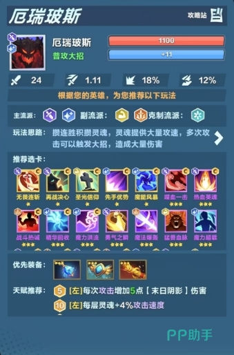 因为如果场上有多个流派都达到了10级以上,那紫卡池子可能就会被污染了,经常会刷出一些自己根本不想要的紫卡,所以还是先把精力放在普攻相关的提升上更靠谱,重点要说一说,在前期的时候,加攻击的紫卡可千万不能随便拿,要知道经济那可是有限的,而再战决心这张卡对于走普攻大招流的影魔来说,加成实在是很低,要是拿了它,那可就容易把自己的成型节奏给拖慢了。