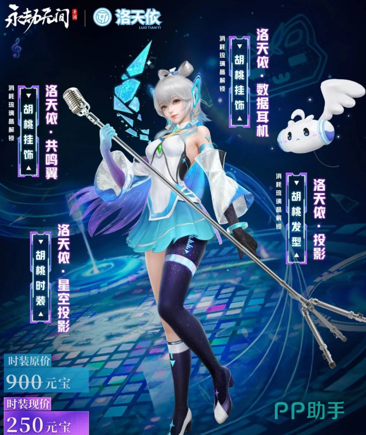本次联动将上线胡桃专属外观“洛天依星空投影”,原价为900元宝,首发特惠仅需250元宝即可入手。若选择购买捆绑礼包,则只需300元宝,便可同时获得胡桃极品时装与斩马刀极品皮肤,性价比极高,是收藏党不可错过的入手良机。