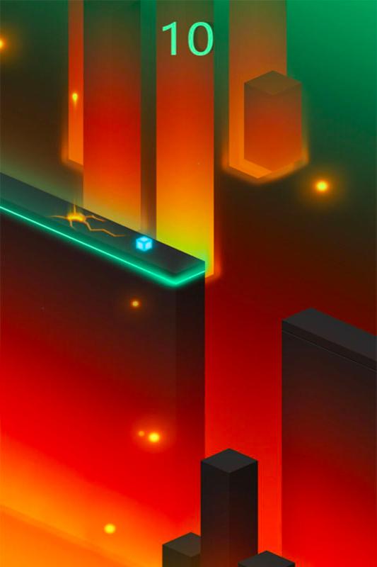 咱的游戏采用的是非常休闲的画风,玩家在游戏里面,需要去控制一个发光的小方块。需要让这个小方块不停的在道路上前进,在有障碍的时候,玩家需要让小方块跳跃起来,否则就可能会掉入到岩浆里面。所以游戏的反应能力是非常重要的,到达悬崖边的时候也要让他跳跃起来。大家只有成功的通过关卡,才能够获得分数的奖励。