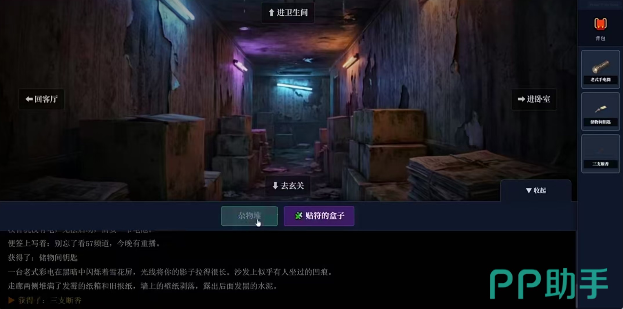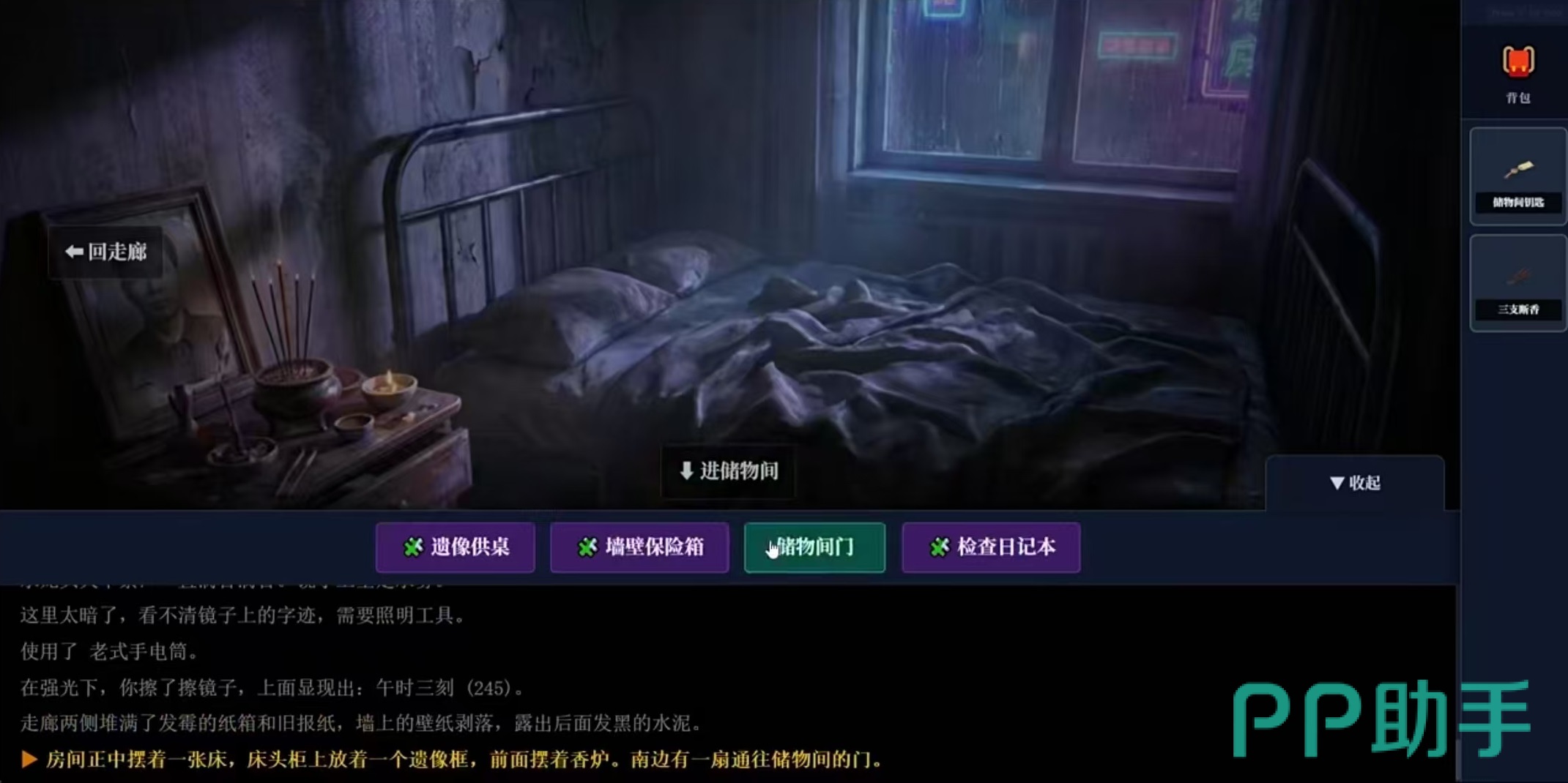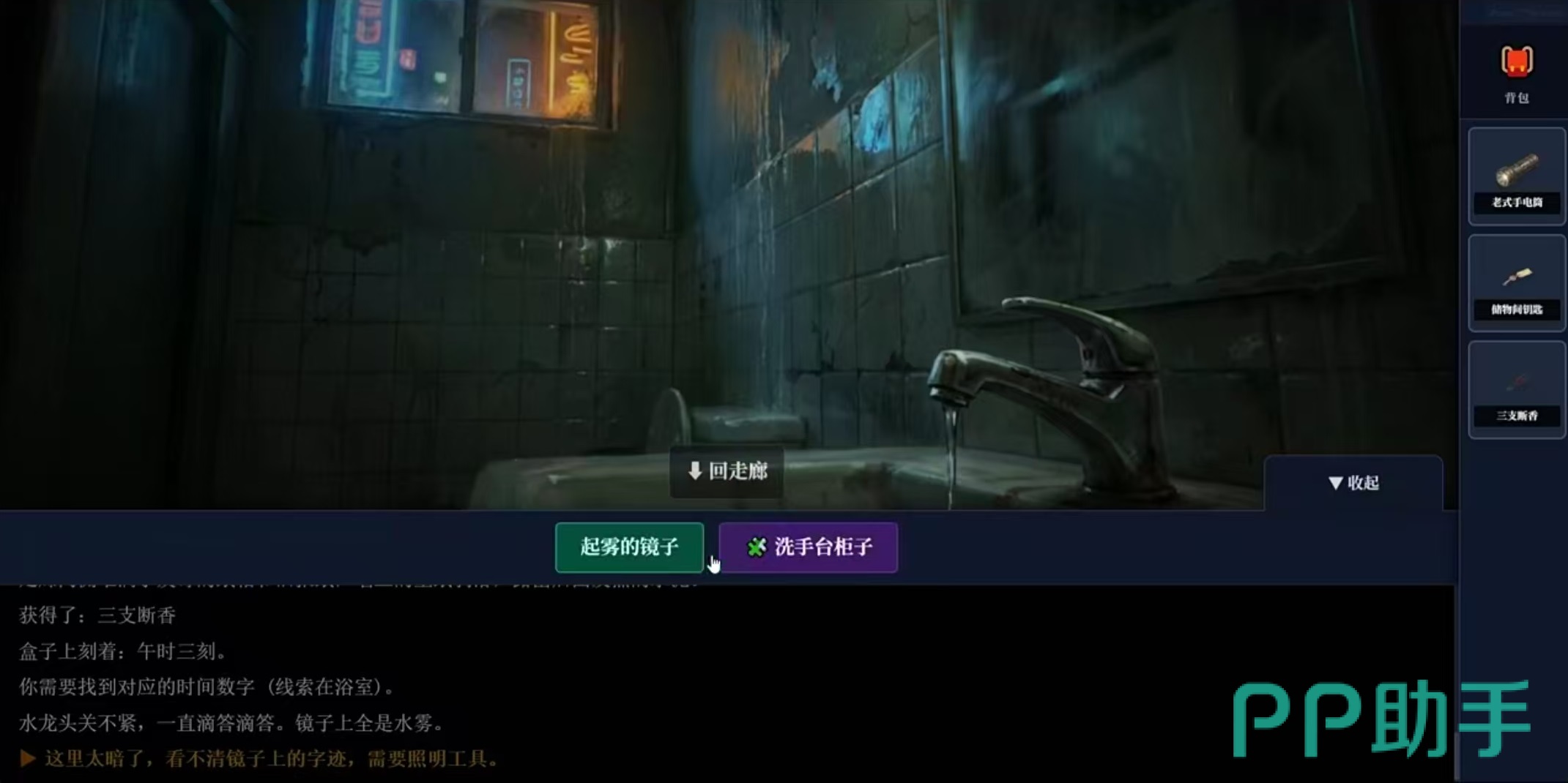 本作摒弃高频惊吓设计,不采用跳脸、突袭类机制,转而依托环境音效(如滴水声、老旧地板吱呀声、断续广播杂音)、文字线索推进与光影节奏变化来营造心理压迫感,适合偏好氛围沉浸与逻辑推理的玩家群体。单局流程控制在约15分钟,节奏紧凑,适配通勤、午休等碎片化使用场景。