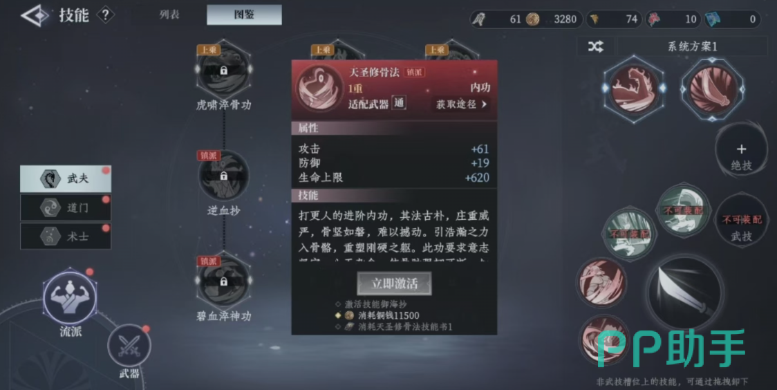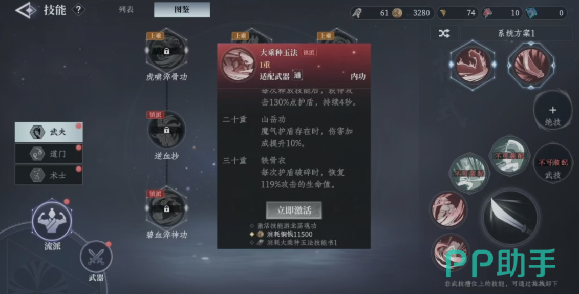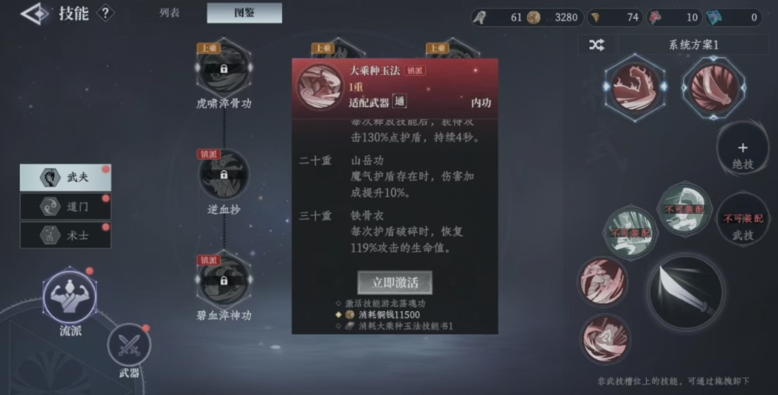 武夫流派以刚猛体魄与持续作战能力见长,代表人物许七安即以五道修为奠定战力根基。该流派可修习三门核心内功:天圣修骨法主生存强化,提供生命值快速回复效果,并赋予一次伤害无效化被动;碧血淬神功则侧重战斗容错与压制节奏,触发免死状态后,随敌方气血降低逐步叠加减伤效果,甚至可削弱其伤害加成属性。