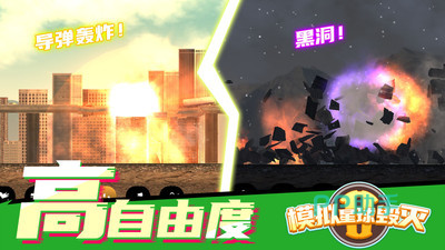 《模拟星球毁灭2》是一款自由度超高的模拟灾难游戏,在游戏中,玩家不仅可以通过各种自然灾害来毁灭城市,还可以利用超多武器和自然威力来破坏星球,游戏中可供玩家支配的道具和技能数量庞大,灾难模拟场景仿佛真实出现眼前。而且游戏中还有多种灾害的原理介绍,在游玩的过程中还能掌握躲避危险的方法和知识。