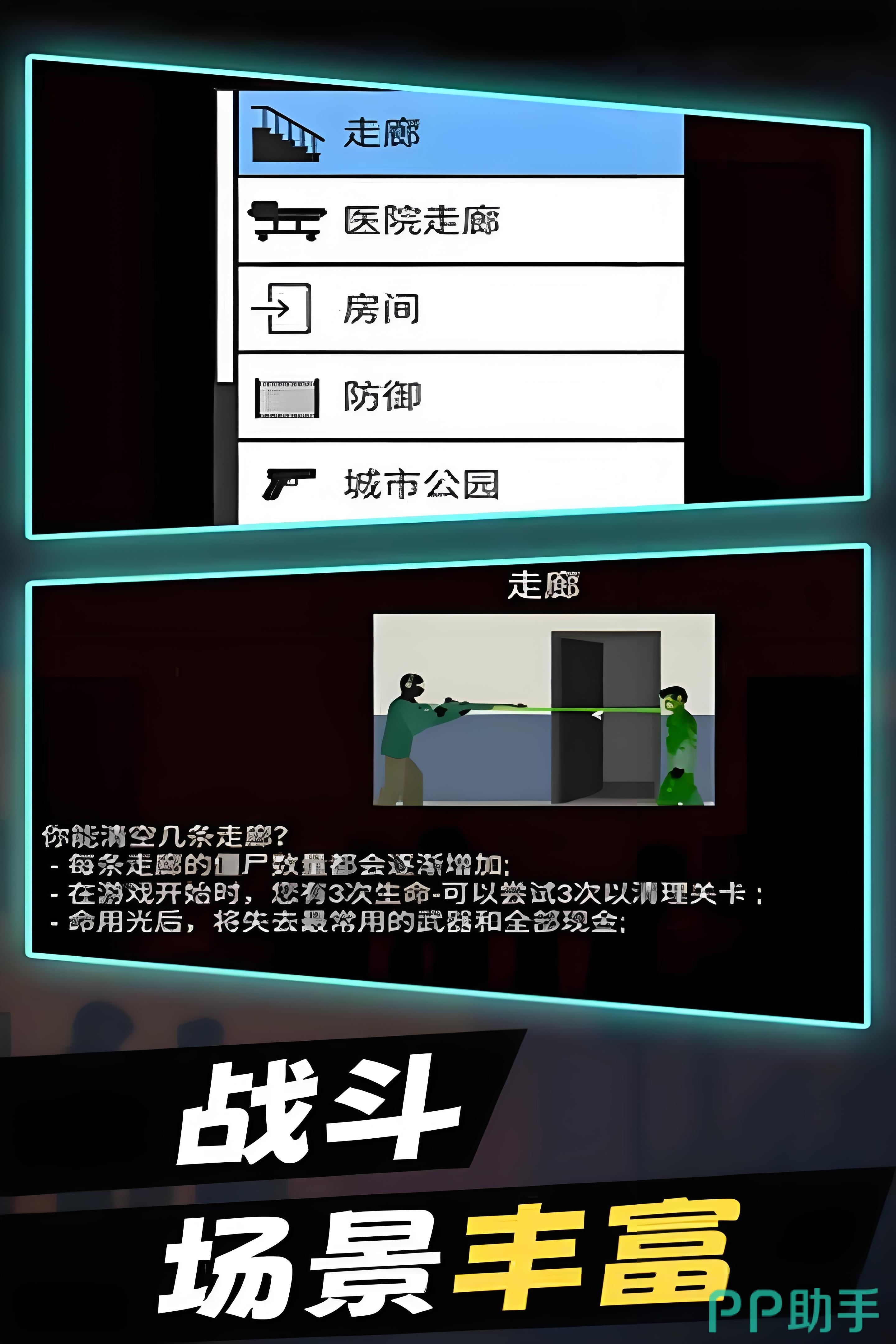《平面僵尸》是一款横版战斗场景的动作射击游戏,在游戏中玩家需要和僵尸敌人对抗并生存,虽然游戏画面比较简单,但是对于武器的种类和形象刻画还是很细节的,游戏中有多种游玩模式和多个战斗场景供玩家选择,每个场景玩家的生命值和通关条件都不太一样,非常有吸引力。