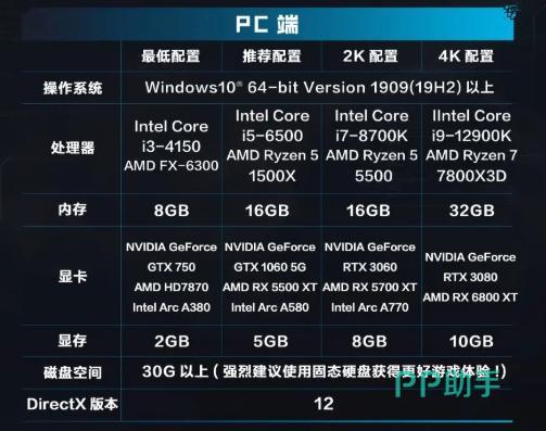 PC端因支持高帧率渲染、实时光追特效、超高清材质及复杂物理交互,客户端体量显著提升。终测版本最低安装空间需求为30GB,且随后续内容迭代将持续增长。为获得更优加载表现——尤其在快速切换场景、载入大型战场或开启高画质模式时,强烈建议将游戏部署于固态硬盘(SSD)中。
