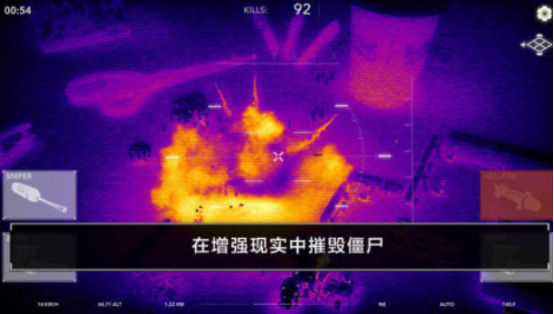利用现如今特别先进的ar技术,为玩家展现出了特别真实的场景。您在开局之后将会沉浸在到处都是僵尸的世界里,在面对这些僵尸横行霸道的时候,必须要全副武装,还要驾驶炫酷的直升飞机向僵尸展开疯狂的对抗。这里涵盖的武器类型有很多,比如有火箭以及加特林枪等等,玩家可通过逐渐收集的方式满足自己的收集欲望。