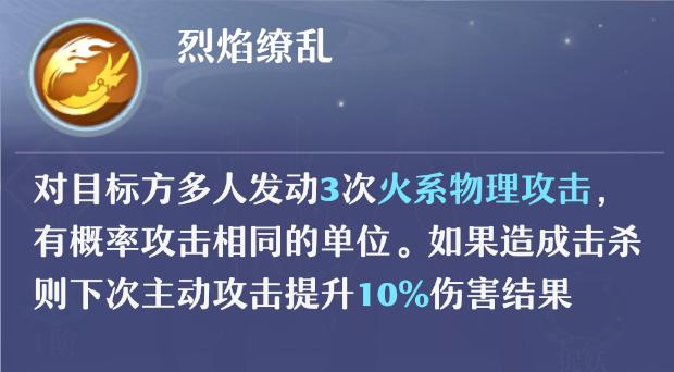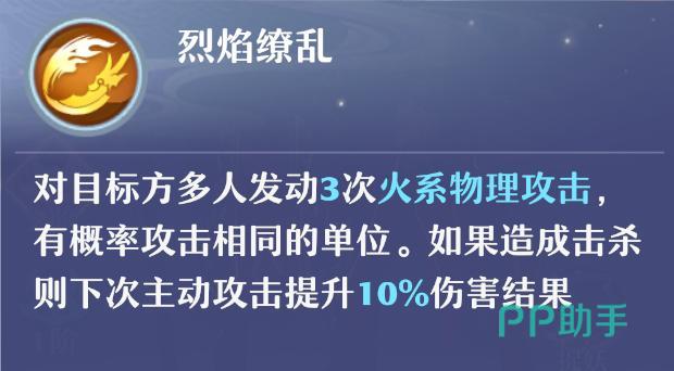 孰湖属于高火亲和、低水抗性的物理输出型战宠,拥有扎实的生存能力。其核心技能为连续三次火系物理群攻,攻击目标依据场上敌方单位数量动态分配:当存在多个目标时,自动分散打击;若仅剩单一目标,则三次伤害全部集中于该单位。该机制使其在清场与控场环节具备天然优势。