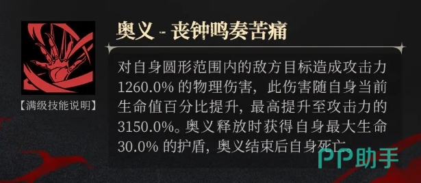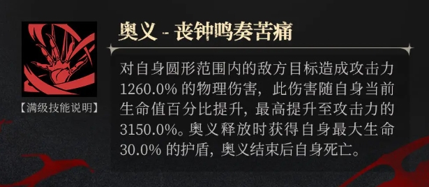 她的奥义技能拥有超高的消耗,但相应的其威力也是惊人的,一旦释放它能够对自身圆型范围内的敌方目标造成高达攻击力1260%的物理伤害,更令人惊叹的是,这个伤害还会随着魅丝当前的生命值百分比而提升,最多能够提升至攻击力的3150%,这意味着当魅丝的生命值较低时,她的奥义技能将变得更加致命,然而魅丝的奥义技能并非没有代价。