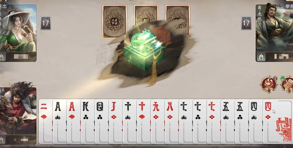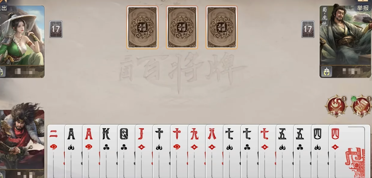 在《三国百将牌》的武将体系中,孙坚虽为早期开放角色,但其技能机制具备显著的对局主导力,常被低估。该武将定位清晰——以稳定获取高阶炸弹为核心,构建中后期关键节奏点。其专属技能“得玺”具有确定性触发逻辑:当玩家手牌中既无三张同点数牌(即无“三条”),也无任何炸弹时,立即获得3张K;这意味着每局游戏至少可稳定成型1组K炸弹(四张K),形成不可忽视的压制资源。