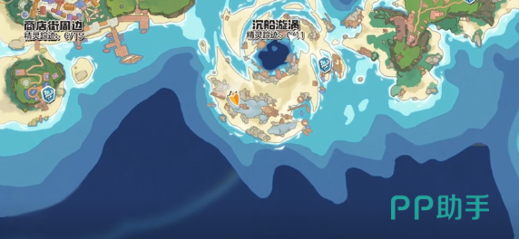 玩家可以来到沉船漩涡这边,在抵达目的地之后,可以朝着正西方向,然后继续往前走,接着开始加速。玩家可以看到中间就有一个传送门,还有一个地穴入口。玩家可以从入口进入到其中。