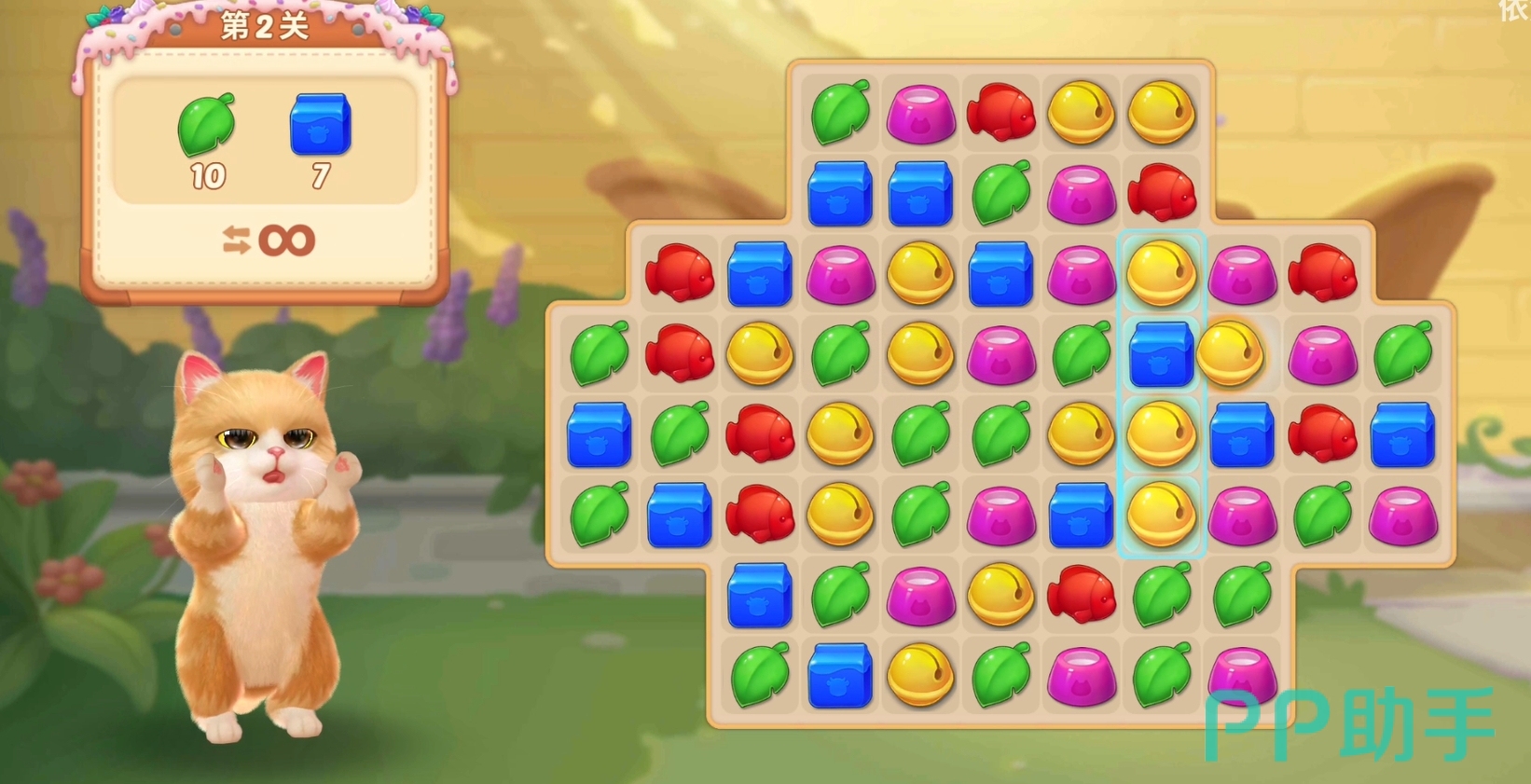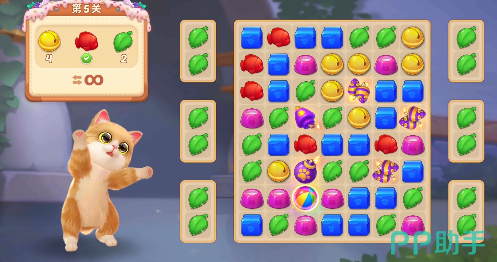 当然,这部作品的主体依旧是三消,其在形式上可谓是集合了三消作品的大成之作,里面的每一个关卡都有着很明确的消除目标,例如需要人们将指定的对象消除掉一定的数量,或是完成多少次连击消除等,同时也有需要人们通过消除来完成将小猫救出来的趣味关卡,在难度上也是由易到难,让人们可通过前期的关卡尽快熟悉该作的玩法,并在后期的关卡里感受到该作所带来的挑战。