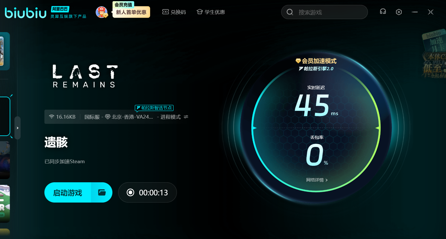 为了让更多玩家体验到biubiu的强大功能,特别推出了使用【biubiu不掉线】来获得3天的提速时长。首次登录即送3小时的会员加速,搭配使用共可获得75小时的免费时间。