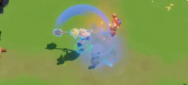 接着看看他那堪称核心的小技能无畏冲锋,虽说被定义为小技能,但是也集伤害、位移以及控制效果于一身,是一个多功能的战斗神技,当卡卡班使用这个技能后,他会向前冲锋,一旦撞击到敌人,便会稳稳地停止移动,紧接着在原地对敌人打出强有力的击飞效果,而且在击飞敌人之后,卡卡班自己还能获得1次特殊的普攻机会,只见他手持大锤向前横扫,不仅能再次对敌人造成伤害,还能将其击退。