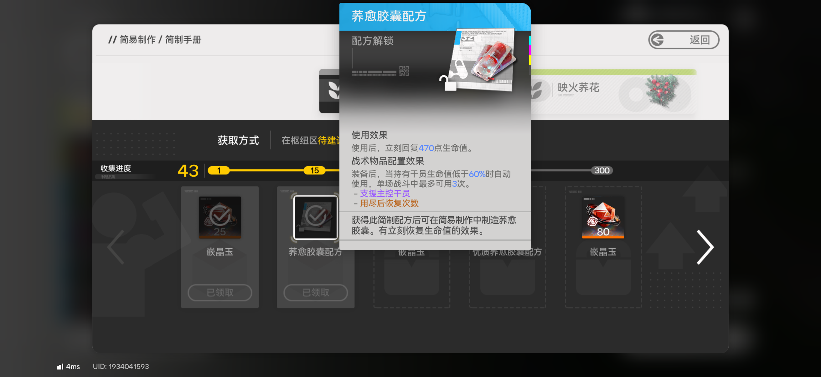 解锁荞愈胶囊的制作权限需前置完成配方研习——玩家需采集至少指定数量的“荞花”资源,达成条件后系统自动开放该配方。配方解锁后,即可进入制作界面开展后续操作。