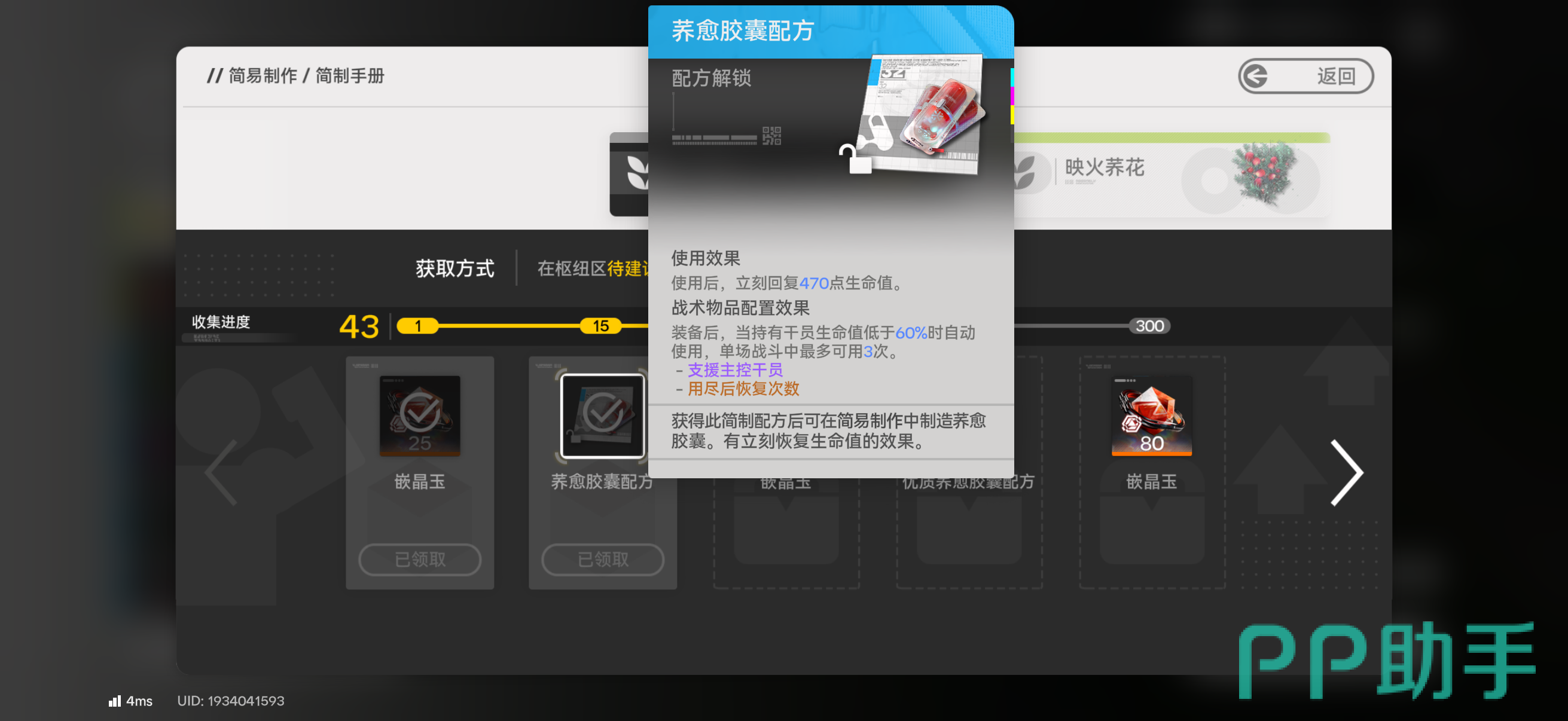 在《明日方舟:终末地》中,所有玩家角色均以“干员”身份展开行动。干员的持续作战能力高度依赖战术补给体系,其中“荞愈胶囊”是核心生命恢复道具之一。该道具无法通过商城直接购买,必须由玩家自主制作或规模化生产,是游戏中唯一可稳定获取的生命值回复消耗品。