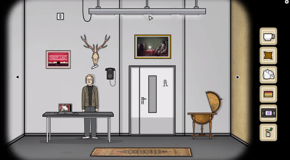 首先可以先点击门口头上方的灯,不断点击之后,会掉下来一张蝴蝶k,接着玩家可以去右边房间搜索展柜,在展柜里会有很多漫画书,在第三排最右侧的漫画书里可以得到蛋A,紧接着可以去旁边展柜搜索,左侧拉门打开之后,能获得蝴蝶q,接着在门口左侧厨房的柜子上会有一个盆栽,移动这个盆栽之后会获得一张蛋Q。