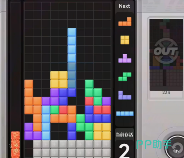 进入后系统将自动分配当前可玩项目,首推经典复刻玩法——俄罗斯方块多人对战模式。本模式沿用原版核心规则:仅设左右移动与旋转两个操作按键,消除完整横行获取积分。所有参与者画面同步刷新,实时显示各玩家当前得分与生存时长。胜负判定依据淘汰顺序,坚持时间越久、排名越靠前,最终结算评价等级越高。