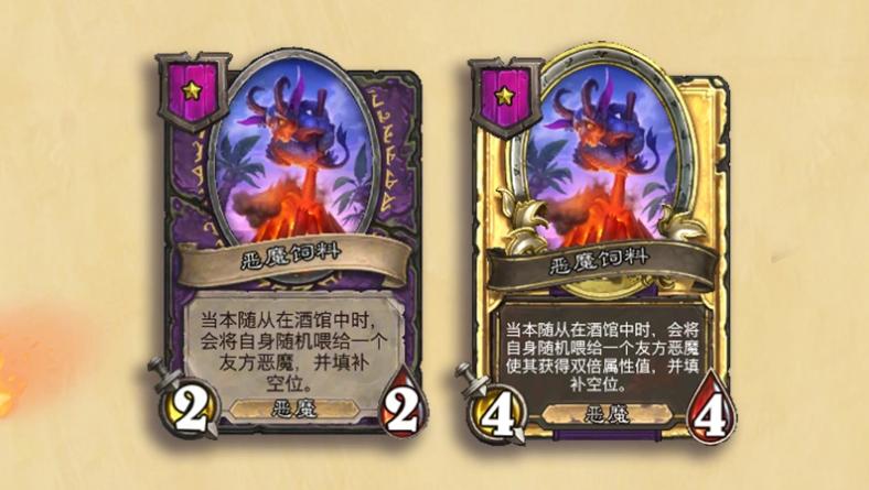 恶魔体系迎来深度重构,“恶魔饲料”成为全新交互要素。该机制表现为出现在酒馆中的特殊图标,一旦刷新即被自动吞噬。部分新恶魔随从具备生成能力,例如二本卡牌“恶魔实验助理”,其战吼效果可在后续三次刷新中各添加一枚恶魔饲料。配合特定饰品(如亵渎者肖像),可进一步强化饲料所转化随从的身材成长路径。