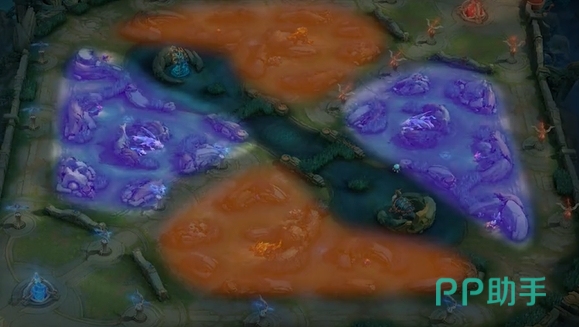 野区是地图上重要的战略区域,分为橙色和紫色两个区域,每个野区都有特定的增益效果,如橙色野区的橙buff可以提升英雄的攻击力,紫色野区的紫buff则能够增加英雄的回蓝效果。