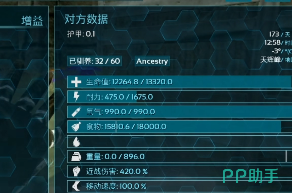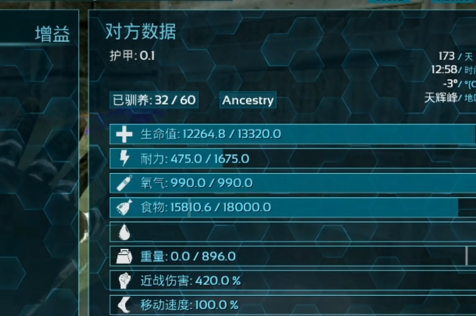 核心机制为范围友方生命恢复技能,可对周围生物施加持续治疗效果。该能力在团队作战、幼崽照护及持久战中具有战略意义,但技能激活将加速饱食度消耗——叠加其本身极高的基础饥饿衰减率,整体资源管理压力显著提升,需持续储备足量饲料以维持生存阈值。