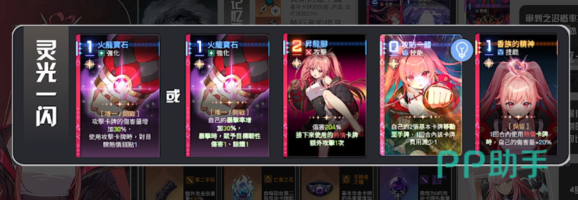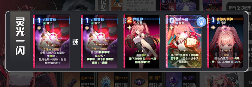 灵光一闪选择策略需分层判断:首选火龙宝石,提供30%全伤害提升及热情弱点附加效果,既强化破韧效率,又扩大后续增伤覆盖范围;次选30%暴击率加成,直接拔高升龙脚暴击触发概率;最优解为“每使用1张热情卡牌,额外攻击1次”,在攻防一体复制量达10+时,单回合可触发15次以上额外攻击,且每段均享受全部增益,上限极高。若未获取该选项,可退而选择“额外攻击2次攻防一体”。值得注意的是,若升龙脚的灵光一闪效果非“移动”或“生成”类(即第2或第4个选项),建议重开存档;整体优先级为:移动>生成>抽取。