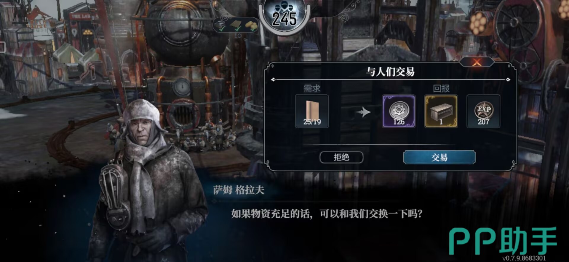 其次萌新需要了解资源的交换与获取。关于物资交换,有很多特殊物资是不容易获取的 ,玩家可以去工人那里看看是否有你需要的材料,如果有的话可以用食物与他们交换。物资获取有很多方法,可以通过基地的生产,也可以外出搜索等等。