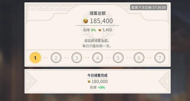 周期储蓄采用7日封闭式计息机制,期间每日限存入一次达克特或蓝钻,到期后一次性返还本金及累计利息。该模式不依赖操作技巧,仅需时间沉淀即可获得确定性回报。值得注意的是,使用蓝钻参与储蓄时,基础年化利率高于普通达克特,若玩家持有暂无消耗计划的蓝钻,将其配置至储蓄模块可显著提升闲置资源利用率。