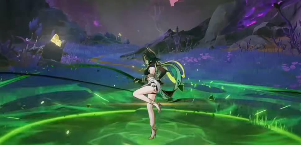 在命座设计上,主要强化方向包括提升重击伤害、延长“影舞”状态持续时间以及加快“草露”获取效率,整体成长曲线优秀,后期潜力突出。她的玩法不仅局限于传统站桩输出,更强调节奏控制与时机判断,赋予了草系主C新的操作维度。
