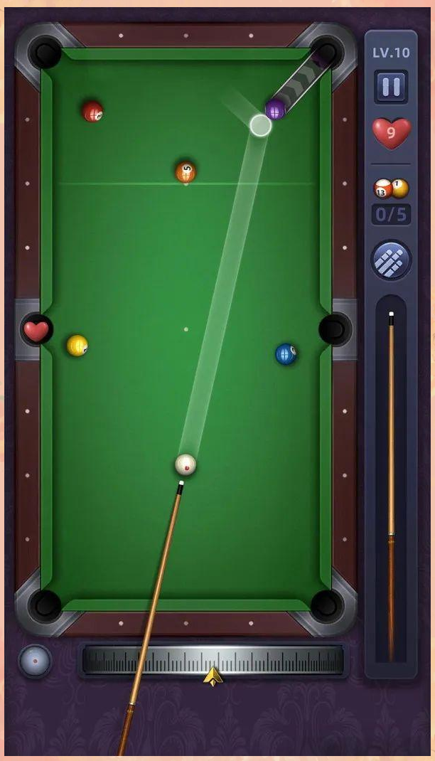 《腾讯桌球》是一款操作简单、富有竞技性的桌球游戏,在击球时,玩家可以看到一个虚拟的准星,帮助确定击球的准确位置和方向。而游戏中的球桌也是根据现实世界中的标准台球桌制作的,球和球袋的摆放非常逼真,这样的设计让玩家更容易代入到比赛的氛围中。