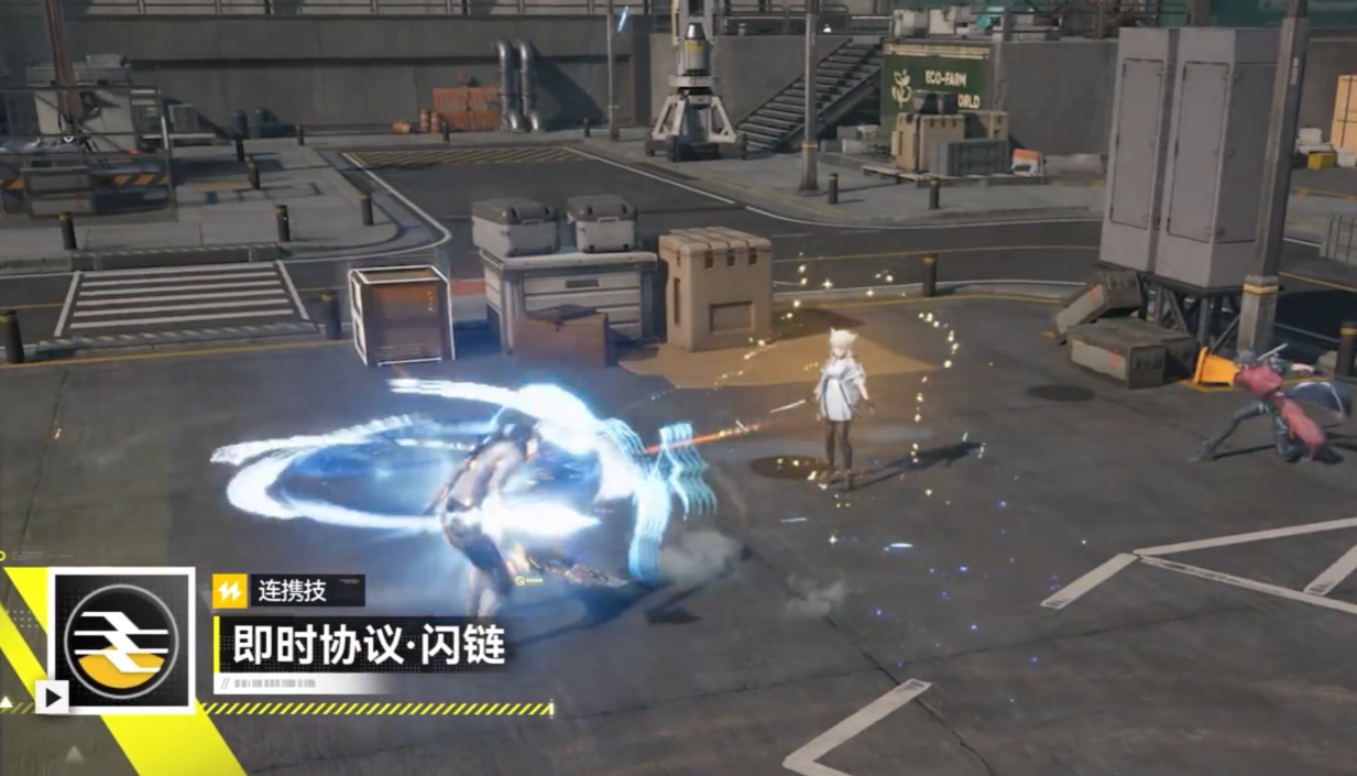 「协议W·雷击」具备空袭打击特性,自空中向目标区域释放电磁能量,造成大范围高额电磁伤害,并附加电磁附着减益;而「即时协议·闪避」需配合主控干员重击触发,可定向轰击指定目标,在造成电磁伤害的同时强制施加短暂导电效果,为团队提供关键控制链支持。