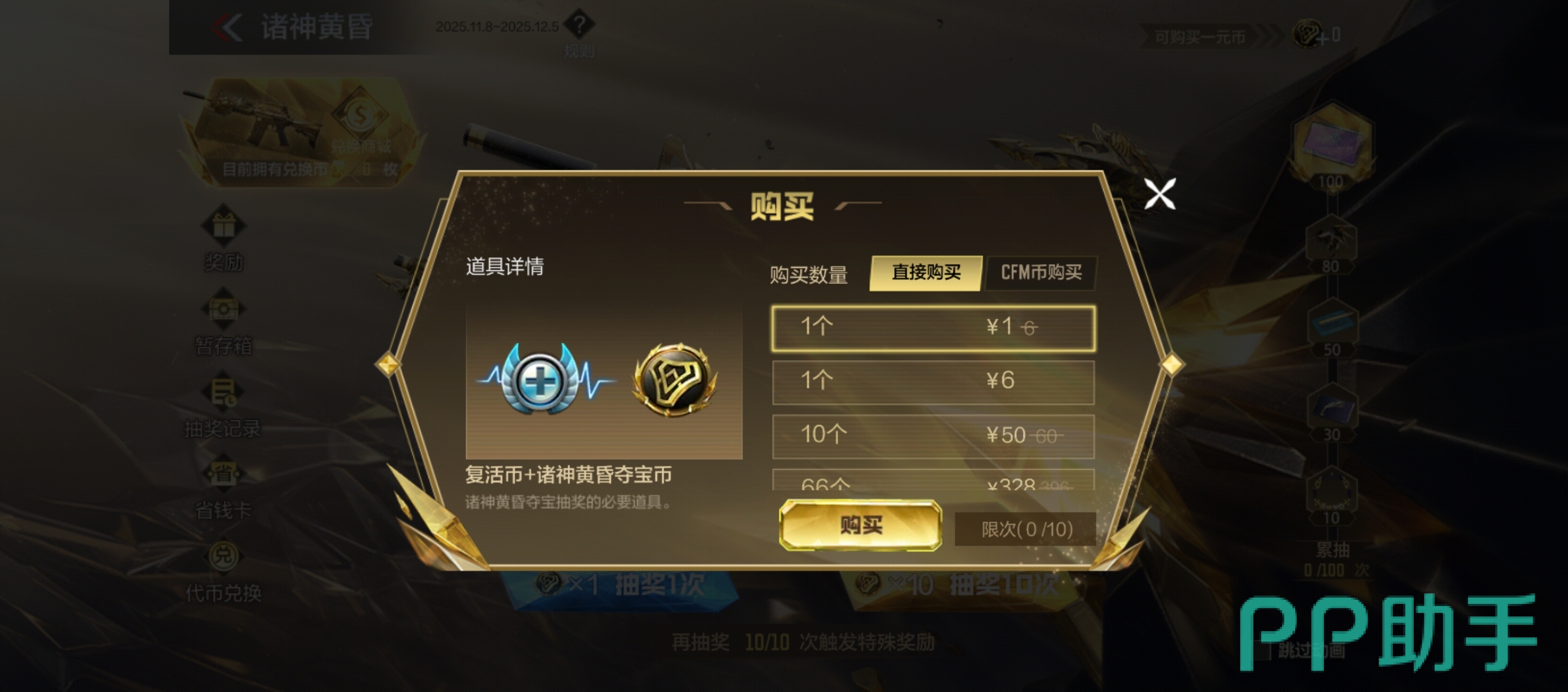 CF手游中的诸神黄昏夺宝活动是以概率抽取形式进行的限时玩法,玩家需消耗特定代币参与抽奖。单次抽奖费用为6元,十连抽则需50元,部分渠道会推出1元购代币的限时优惠。值得注意的是,代币不仅可通过充值获取,还能通过完成游戏内指定任务免费获得。例如,在CFM币商城中参与20连抽福利活动,就有机会以较低成本积累足够代币,从而减少直接充值的需求。