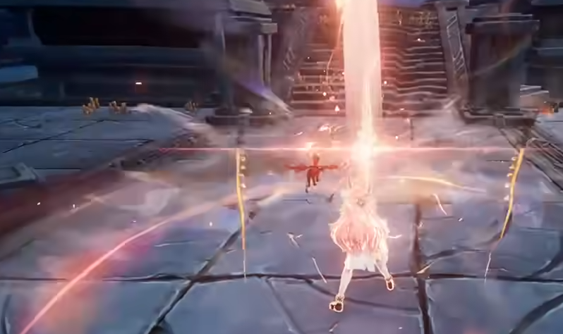 “坚忍之名”技能使她向前飞跃,途中触发三次范围伤害,落地后再引发一次范围打击。大招可将当前近战武器转换为“萨麦尔”,对前方扇形区域敌人造成光伤。在此形态下,普通攻击变为四段连击,长按进入蓄力状态,期间减伤并每0.5秒消耗神智积累连击点,蓄力结束后释放强力范围光属性攻击。