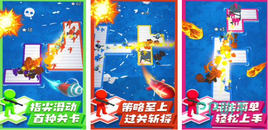 清新又简约的画风,还以火柴人作为主要的题材,在这里将会感受到非常刺激的进攻模式,主要以神秘的海岛为背景,您将要在偌大的海岛上轻松应对敌人的攻击,利用指尖就能轻松畅享上百个不同的挑战关卡,在此游戏中策略至上,玩家必须要发挥出自己的策略头脑,轻松应对敌人。