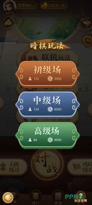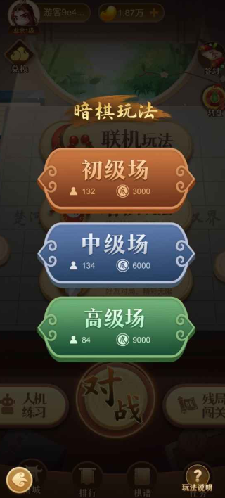 玩家在游戏内,可以选择3种不同类型的赛局,它们分别代表的是初级赛场、中级赛场、高级赛场,如果玩家对于象棋的规则并不了解,也可以通过游戏当中的人机对战,亦或是残局闯关,来增强自己的棋艺水平。