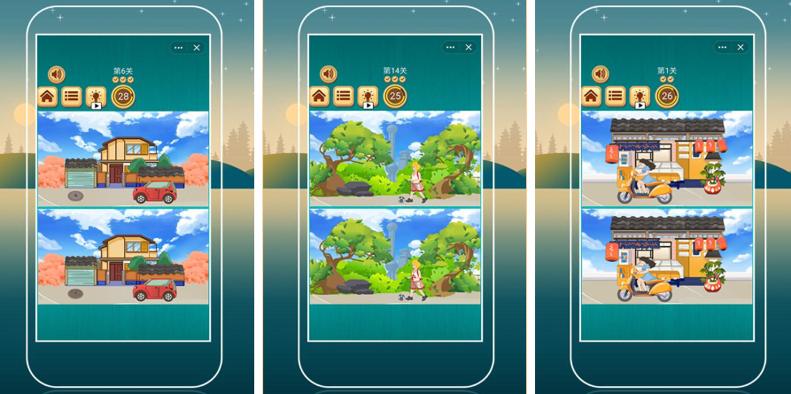 这是款考验玩家眼力的找茬游戏,团建的时拿出来和同事一起闯关,可以很好地拉近彼此之间的关系,也能让饭局不那么无聊,关卡中会分发两张不同图纸,图纸里会存在不同点,他们有可能是图案,也有可能是线条颜色,找出他们不同之处点击出来,才可进入下一关继续挑战,越到后面关卡难度越高。